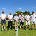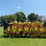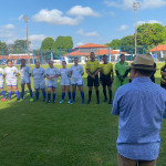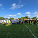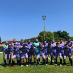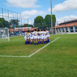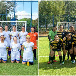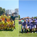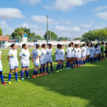 Times da Presidência FC (à esquerda) e Corregedoria FC (à direita) posam para foto antes do jogo