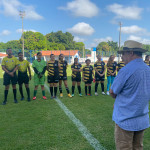 Times do Judicial FC (à esquerda) e STIC FC (à direita) posam para foto antes do jogo